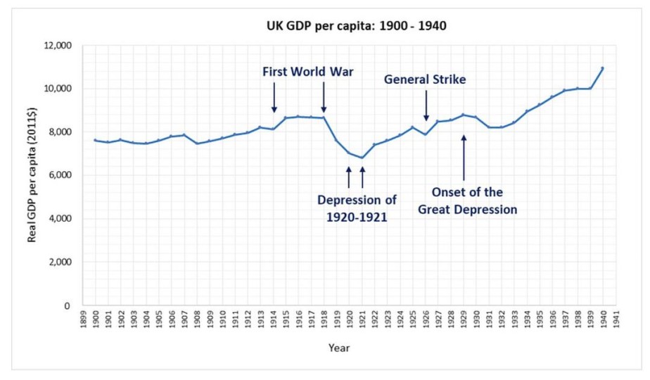 英国GDP较1929年下降约6–7%。